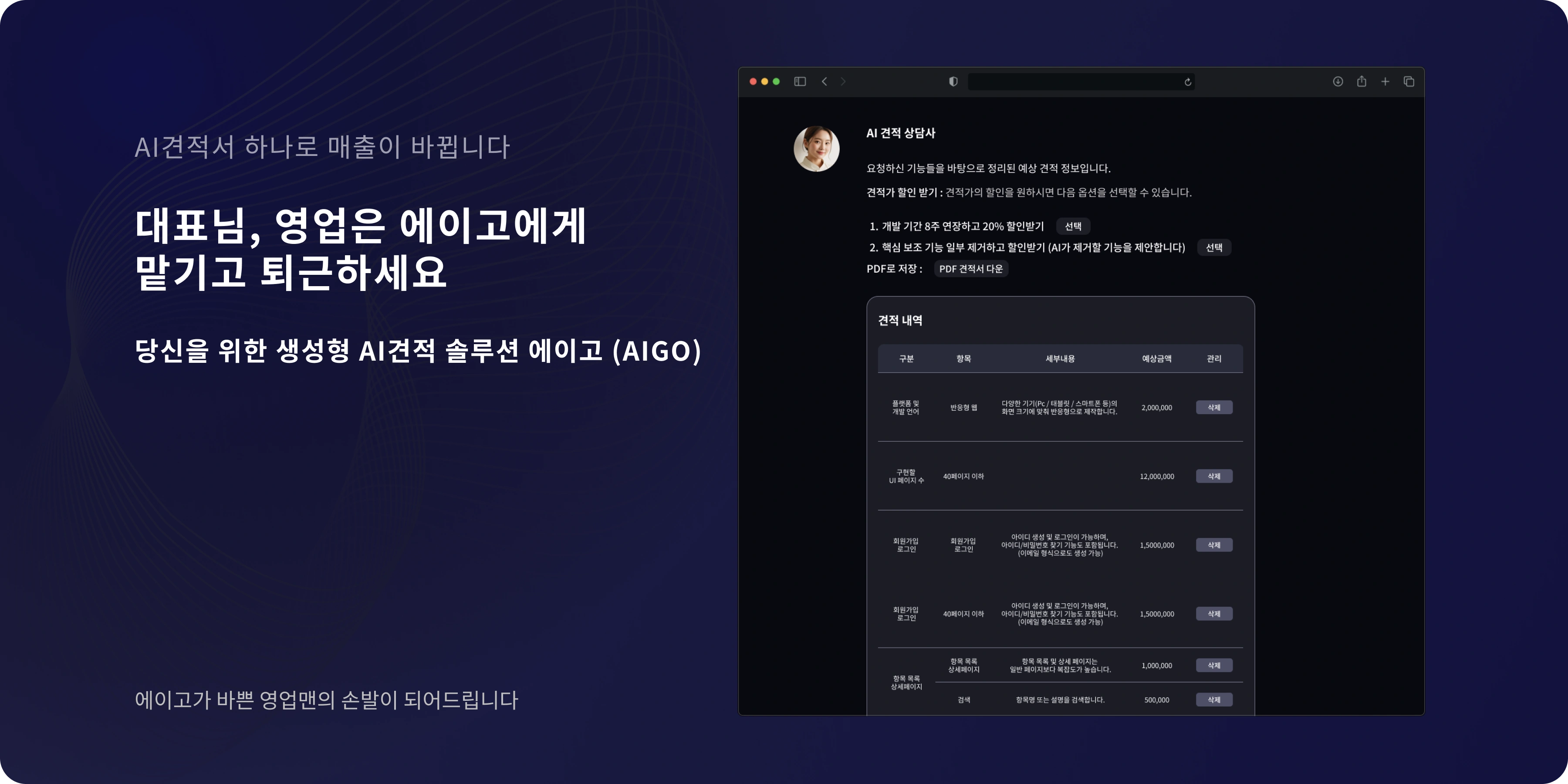 실시간 맞춤 견적을 생성해 영업 효율을 높입니다